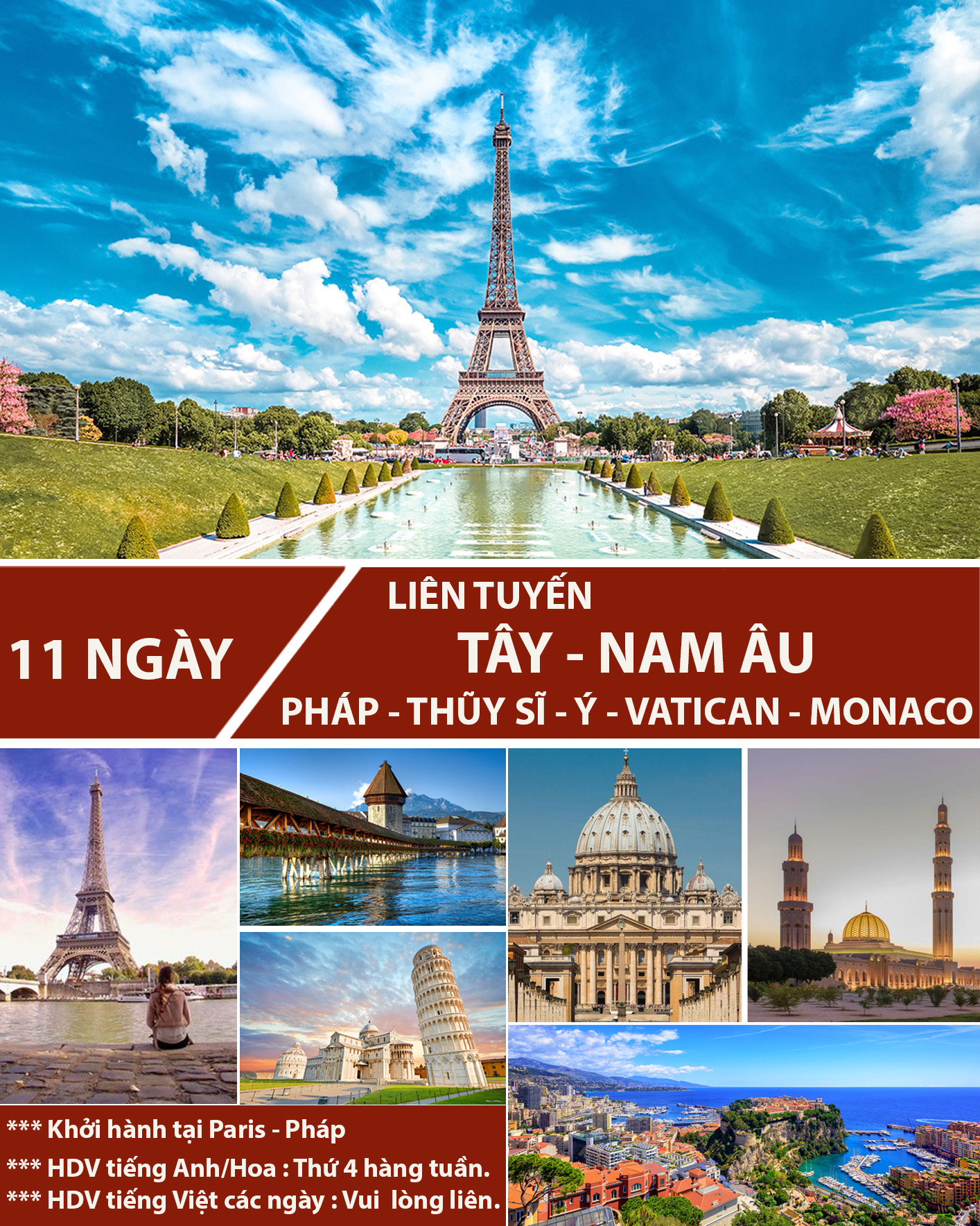 - Thuế vào Paris + Thuế qua đêm ( tính theo mỗi khách, mỗi ngày tour) : €15 (Đây là phụ phí bắt buộc, phải thanh toán trước khi vào thành phố)