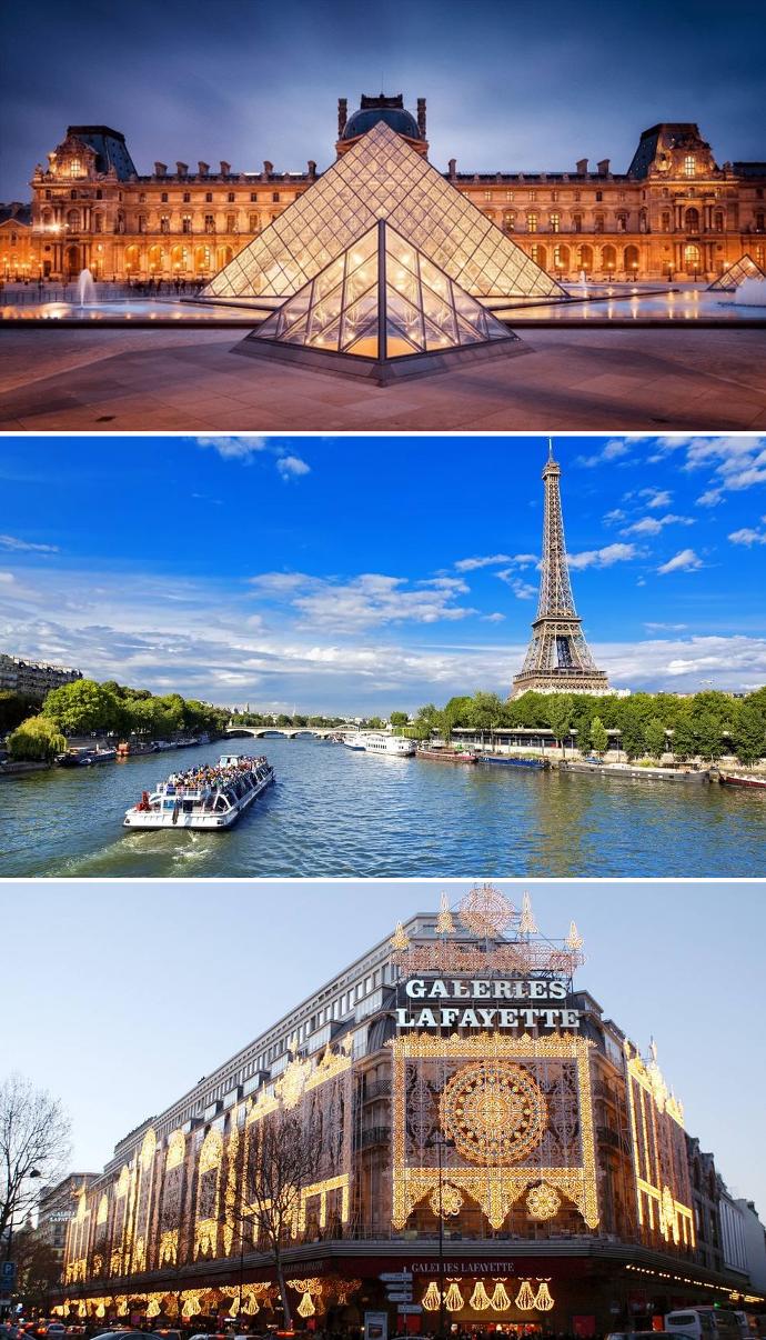 - Ngày thăm quan thứ 2 tại Paris sẽ được bắt đầu bằng việc đi đến bảo tàng Louvre, một trong những bảo tàng nghệ thuật lớn nhất thế giới, nơi chứa hàng trăm ngàn các tác phẩm nghệ thuật có giá trị của nhân loại, trong đó đáng chú ý nhất là Tượng nữ thần sắc đẹp Venus, tượng thần chiến thắng Samothrace hay bức tranh nổi tiếng vẽ nàng Mona Lisa với nụ cười bí ẩn của Leonardo da Vinci.