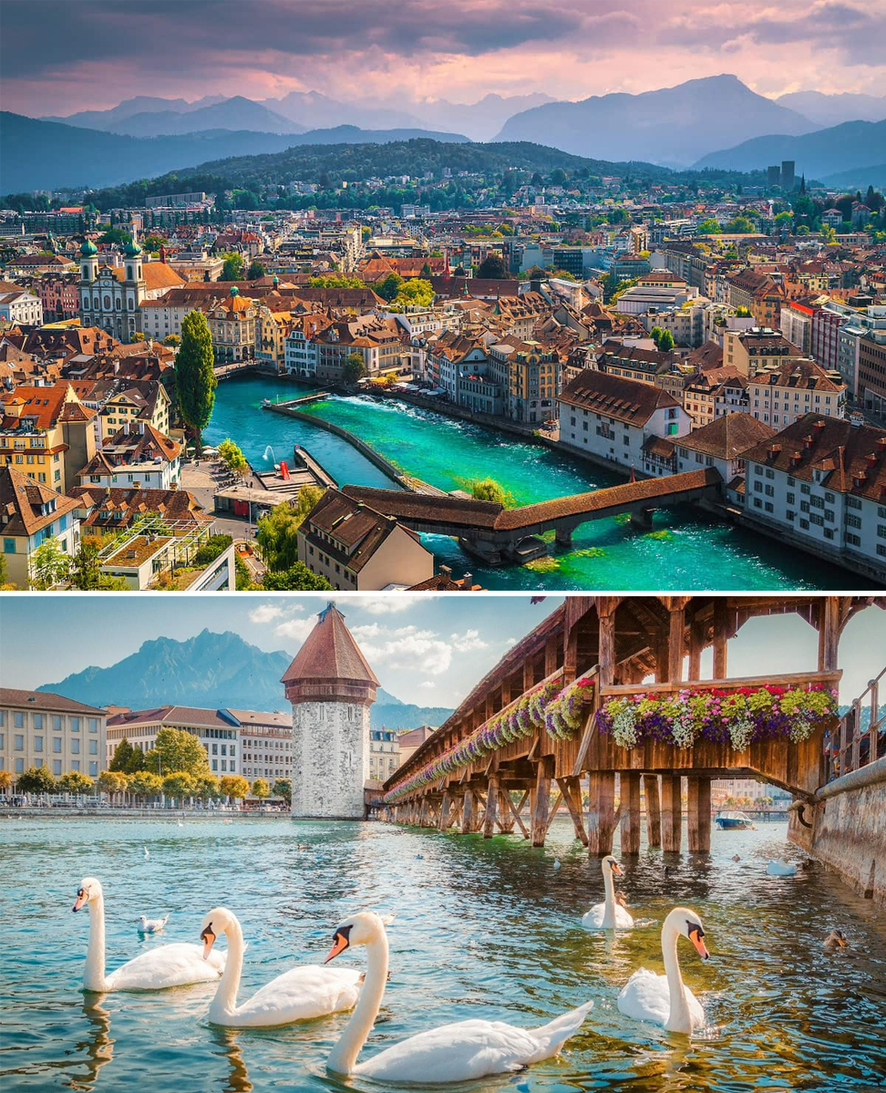 - Tại Lucerne du khách có dịp được thăm quan địa điểm nổi tiếng nhất của Lucerne là Cầu gỗ cổ Chapel, thác nước, chiêm ngưỡng những ngôi nhà theo lối kiến trúc Broque và Gothic.