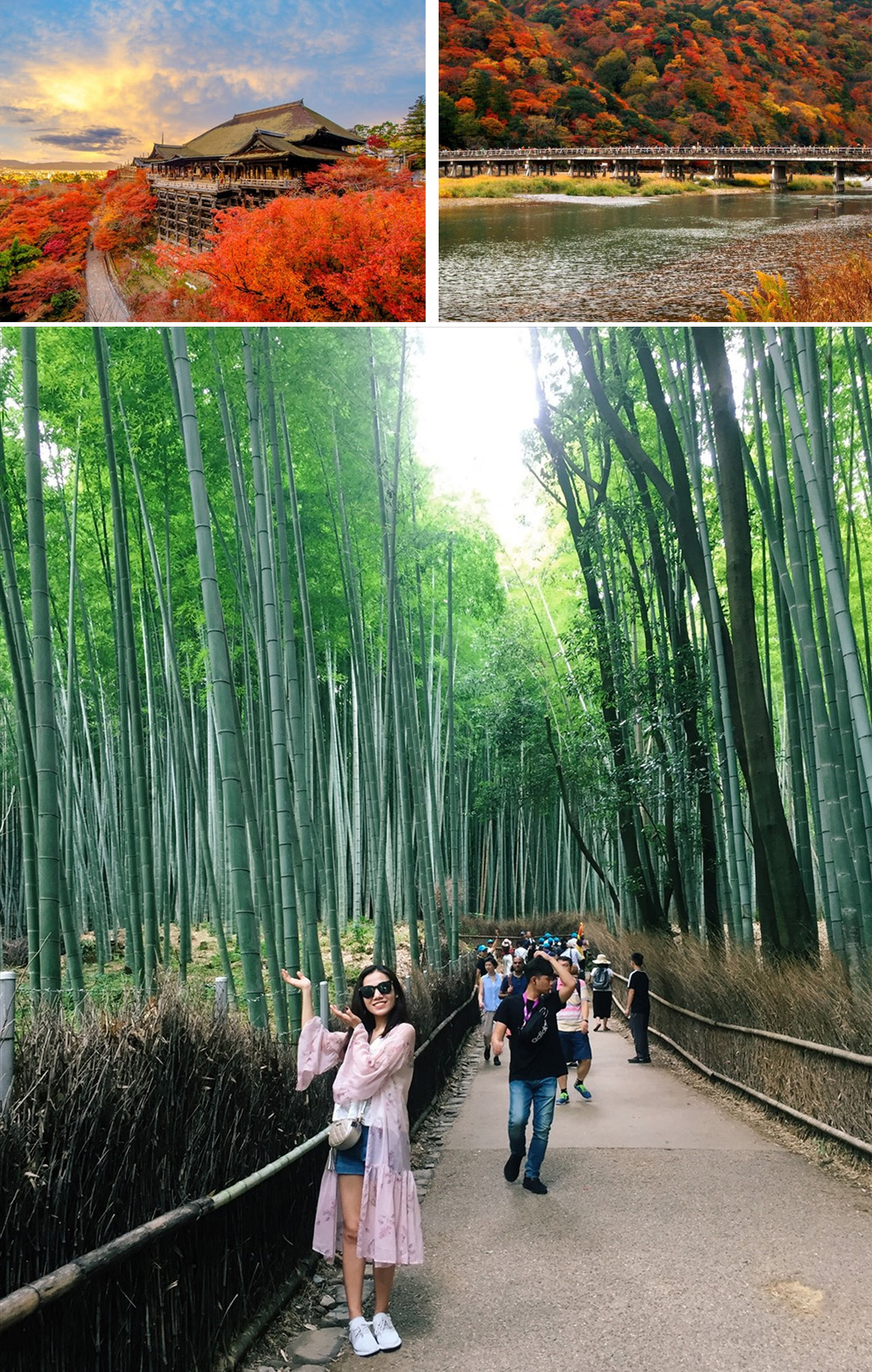 - Ngắm lá đỏ tại khu vực Arashiyama - Cầu Togetsukyo chiêm ngưỡng vẻ đẹp cảnh sắc mùa thu hai bên bờ sông Hozu đẹp rực rỡ tại khu vực Arashiyama.